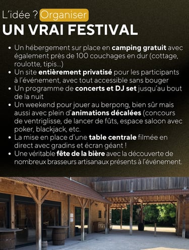 Pendant tout un week-end, nous nous retrouverons donc tous au même endroit : camping gratuit, deux grandes salles, animations pour développer un véritable festival avec concerts et DJ toute la nuit
