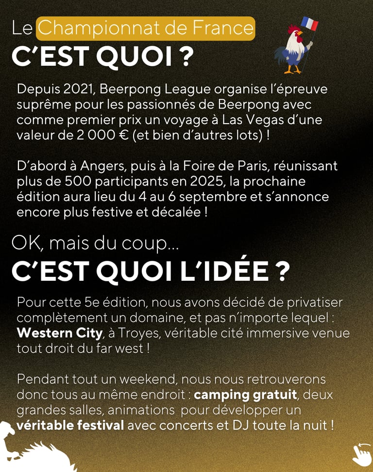 Depuis 2021, Beerpong League organise l’épreuve suprême pour les passionnés de Beerpong avec comme premier prix un voyage à Las Vegas d’une valeur de 2 000 € (et bien d’autres lots) !