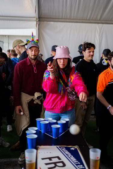 Une partie de Beerpong dure 10 minutes (sauf cas particuliers) et se jouent avec 10 gobelets de part et d'autre (sauf cas particuliers aussi). Que ce soit en compétition, ou chez vous quand vous vous entrainez, nous vous recommandons de respecter cette durée qui est idéale pour avoir le temps de jouer, et instaurer cette petite adrénaline du chronomètre qui défile ! Car en effet, si la partie n'est pas terminée au bout des 10 minutes, peu importe si les 10 gobelets ne sont pas tous élimines, la partie s'arrête !